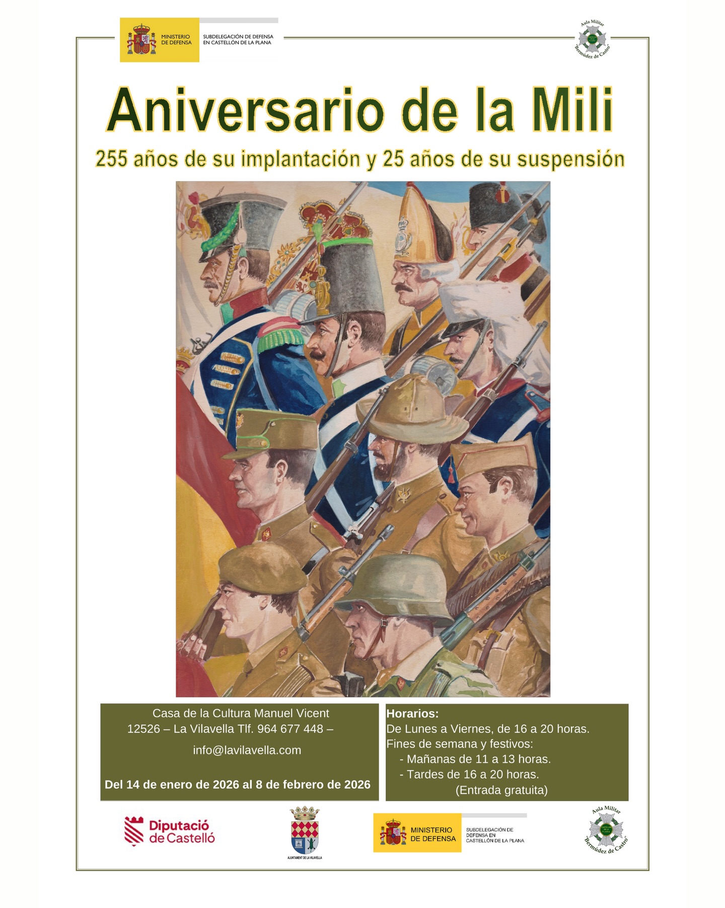 Hoy a las 19:00 h se inaugura en La Vilavella una exposición dedicada a la mili, coincidiendo con el 255 aniversario de su creación y